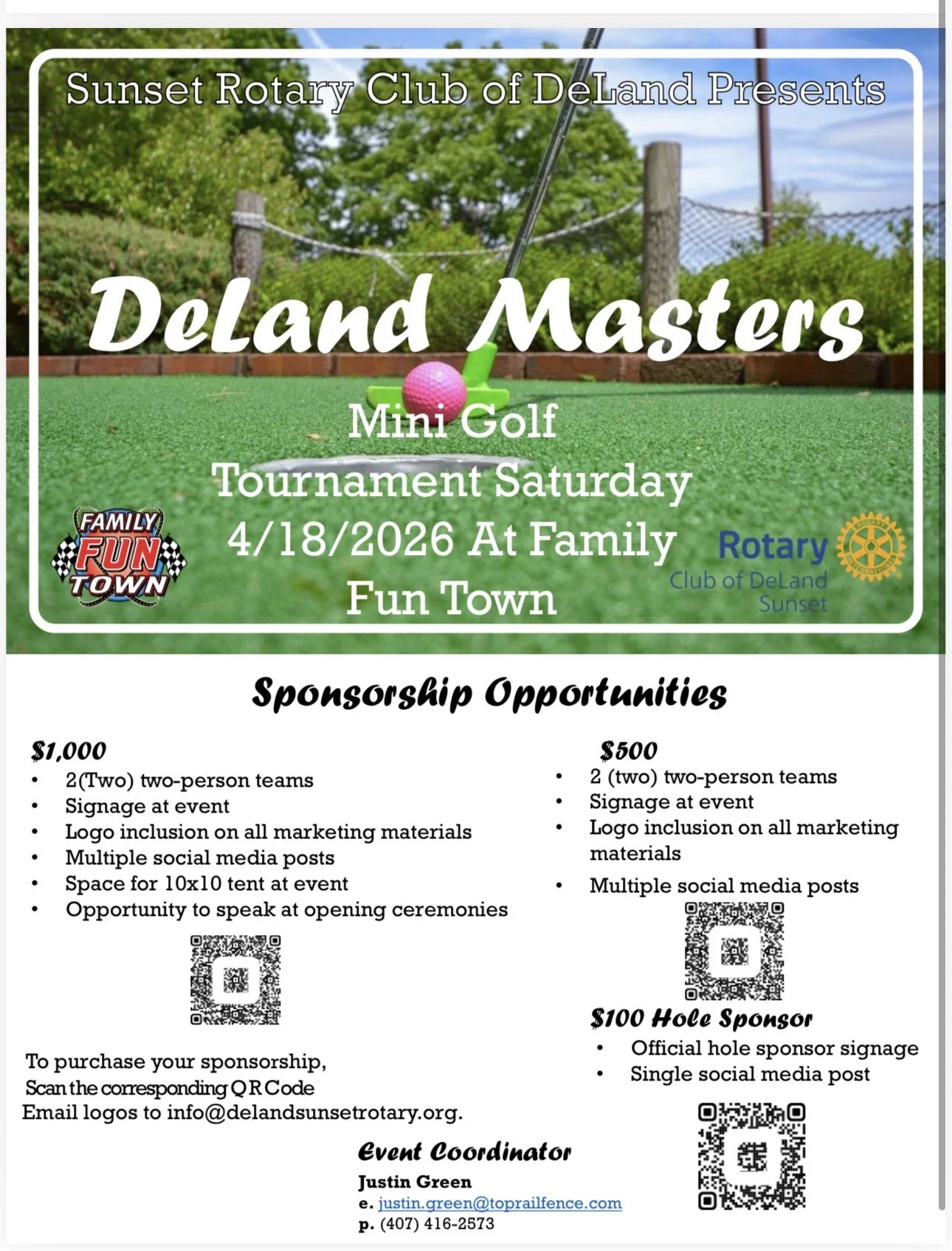Sponsoring the Mini Golf Tournament is a great way to support the community while promoting your business. Sponsorship helps make this event possible and allows us to create a fun experience for everyone involved.